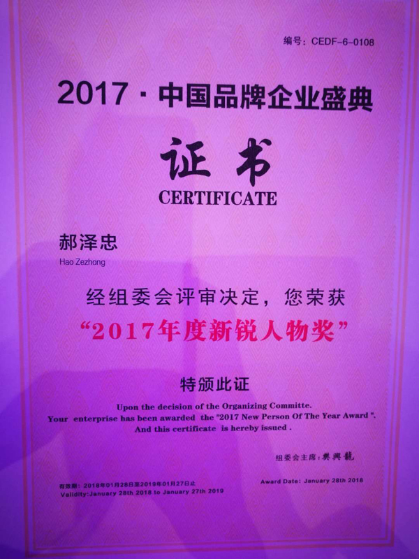 ? ? ? ?在此次盛典上,中科宇杰董事長郝澤忠先生作為一個走在技術創(chuàng)新的前列的大型現(xiàn)代化企業(yè)的奠基者和管理者,憑借自己的行業(yè)實力,從國內眾多候選企業(yè)家中脫穎而出,被組委會授予“2017年度新銳人物獎”。